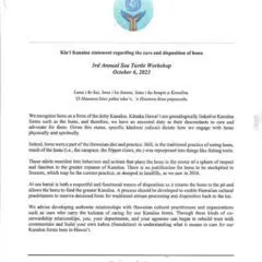 2023- Kia'i Kanaloa Statement Regarding the Care and Disposition of Honu.