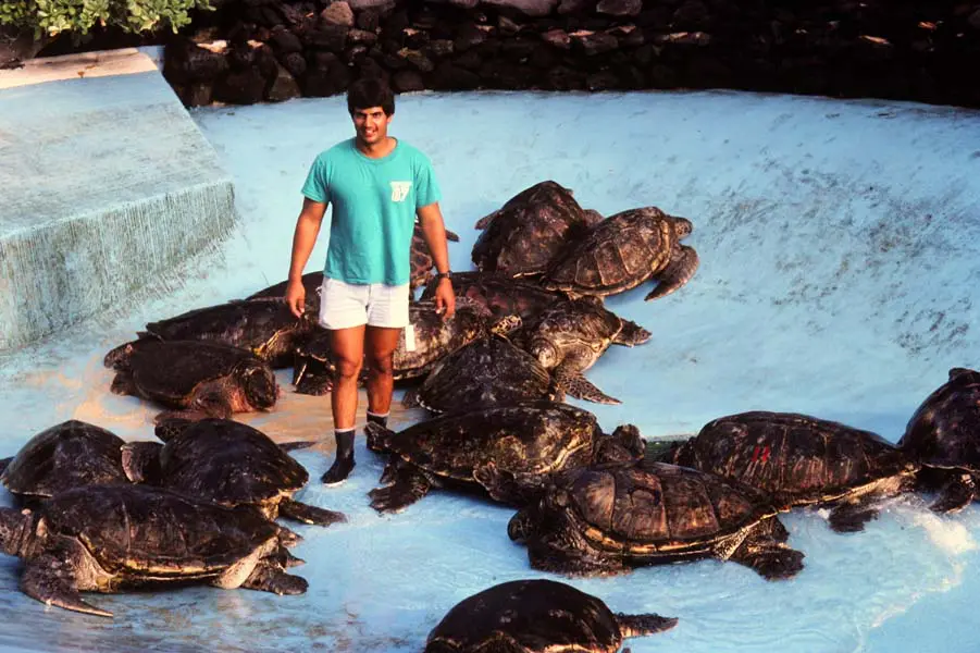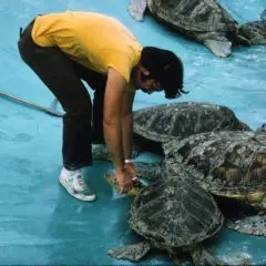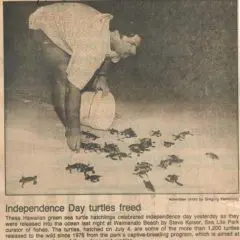 1985- Release of Sea Life Park Captive-Bred Green Turtles at Bellows, Waimanalo by George Balazs.