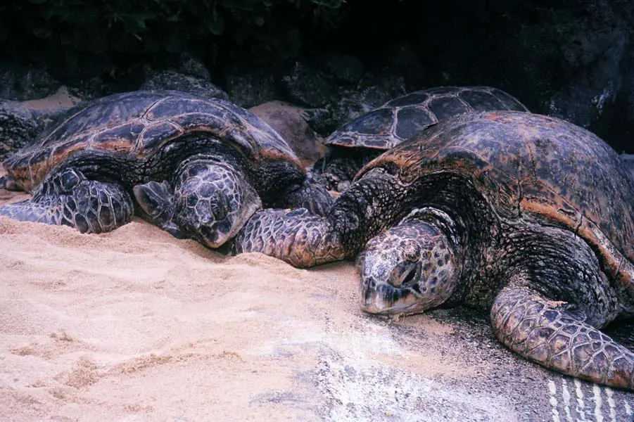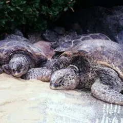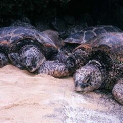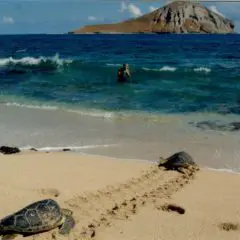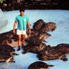 2021- Hawaiian green sea turtles find their way to a new home in the ocean- Earth Day.