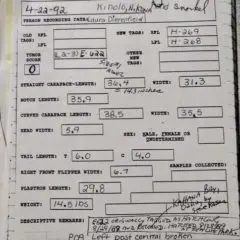 1994 & 1995- Genetics skin samples collected at SLPH for Peter Dutton on 10/10/1994 and 1/23/1995.