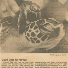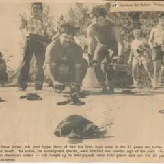 1973- Nine Large Green Sea Turtles Tagged and Released. Sea Life Park Hawaii News Release+