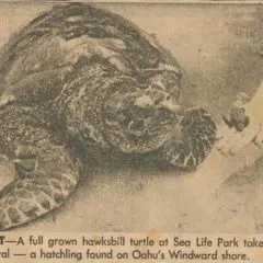 1975- Rare Hawksbill Found in Tide Pool. HSB.