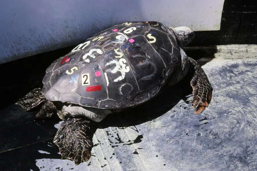 1976- 4 Giant Turtles Sea-Soned & Aquarium Releases 7 Turtles.