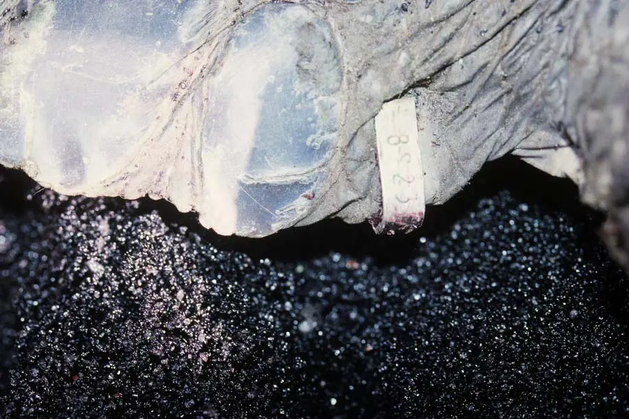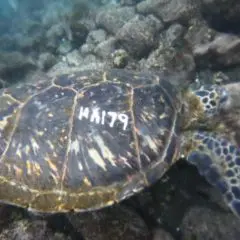 2007- Punalu'u Recovery of Green Turtle 423B494262 Tagged at Puako in 2001.