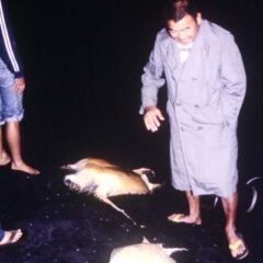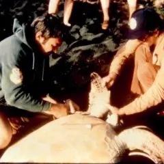 1984- Recovery of Punaluu Tagged Turtle 7723 at Ninole Cove by Laura Craig.