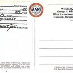 1987- Johnston Atoll QSL Cards Retroactive Confirmation of Contact by WH6BLQ George Balazs.