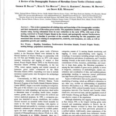 Frey, Dutton and Balazs (2013) Insights on the demography of cryptic nesting by green turtles in the main Hawaiian Islands from genetic relatedness analysis. JEMBE.