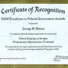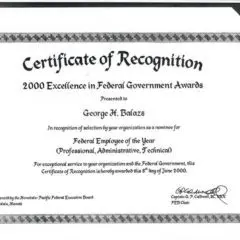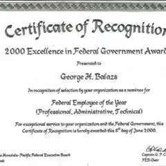 2014- Letter of Appreciation to George Balazs from Donna Wieting, Director OPR.