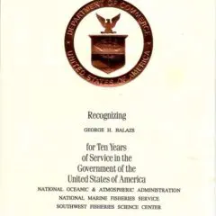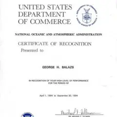 2013- 30-Year NOAA Award Ceremony Statements for George Balazs.